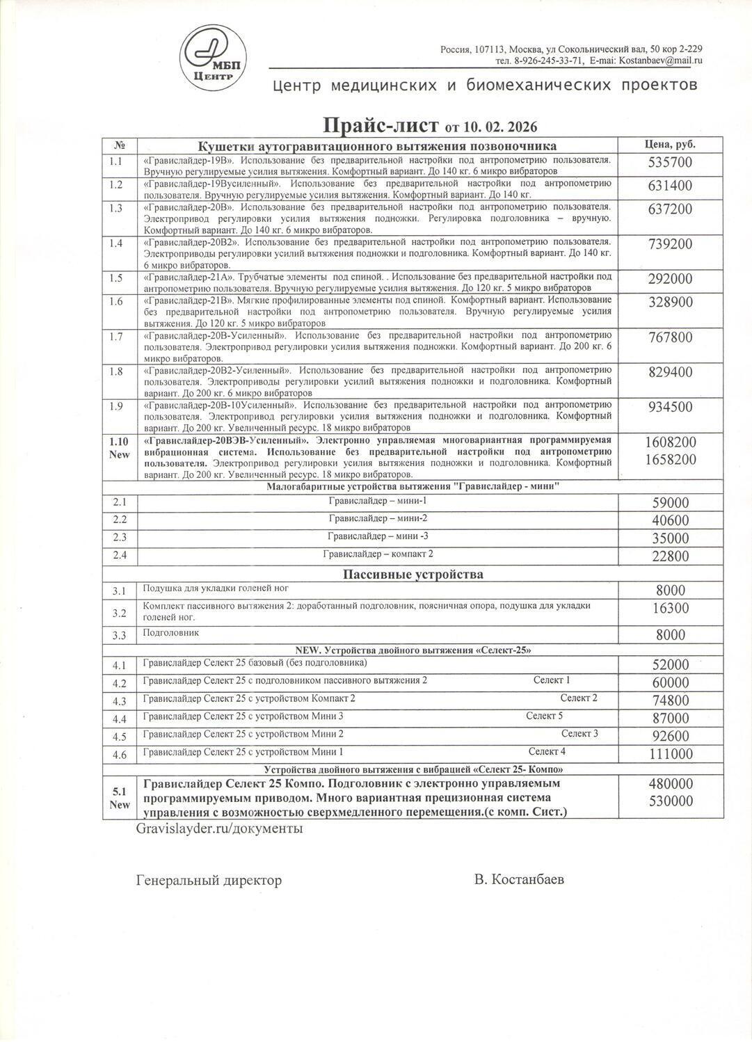 ПРАЙС ЛИСТ 2026