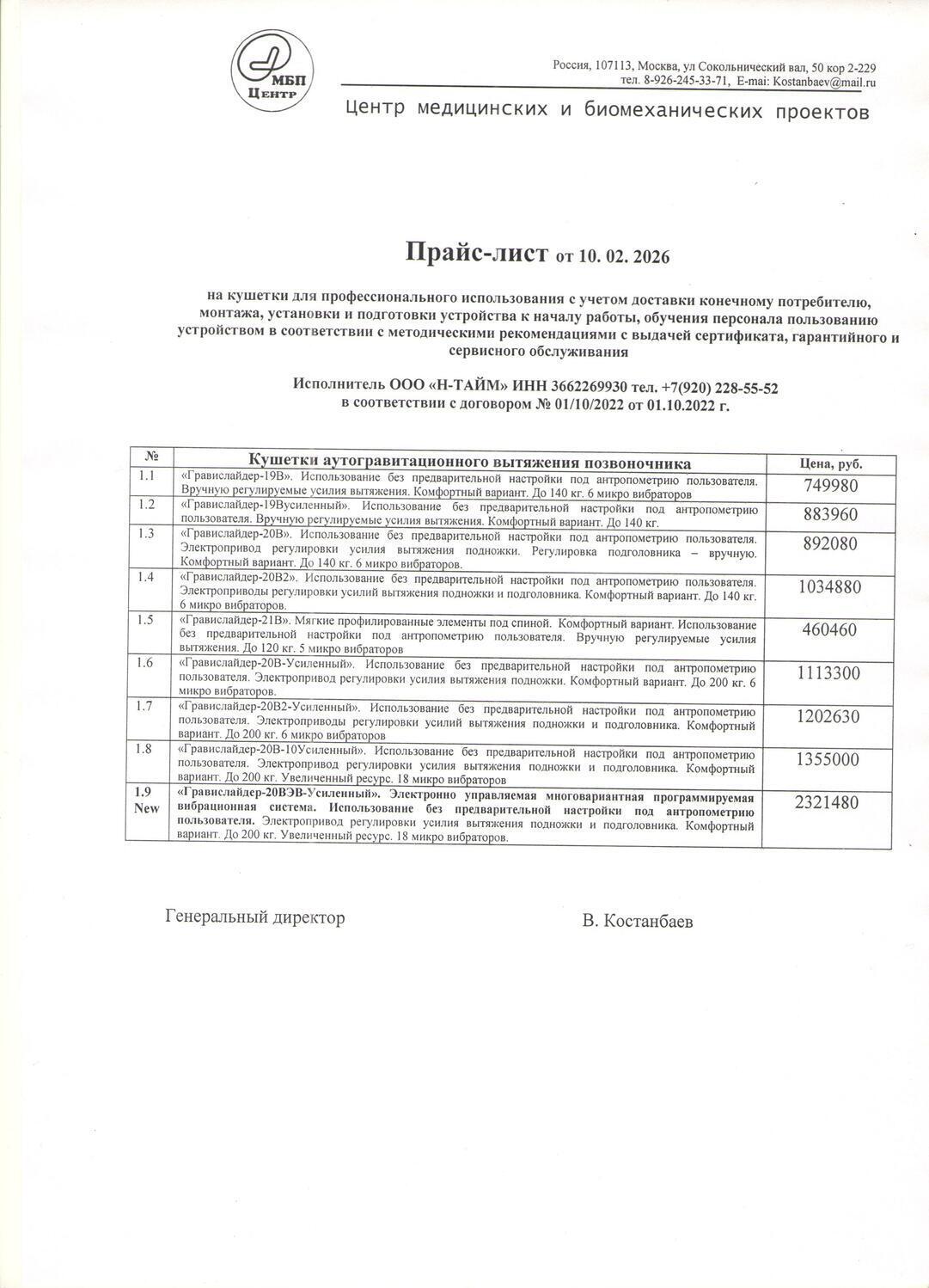ПРАЙС-ЛИСТ 2026 с учетом услуг